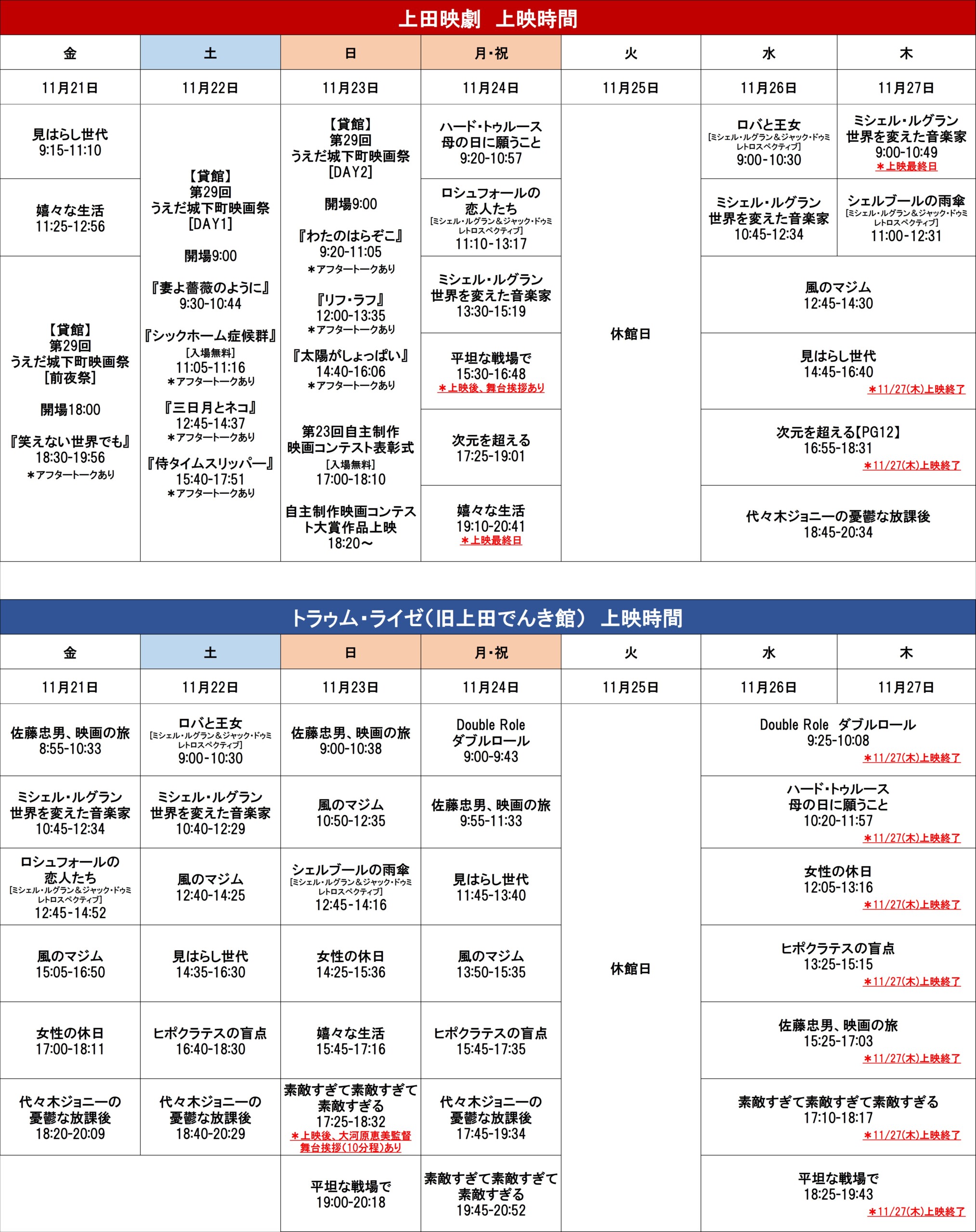 *【11月28日~12月4日】の上映スケジュールは、11月20日(木)夜以降に掲載いたします。