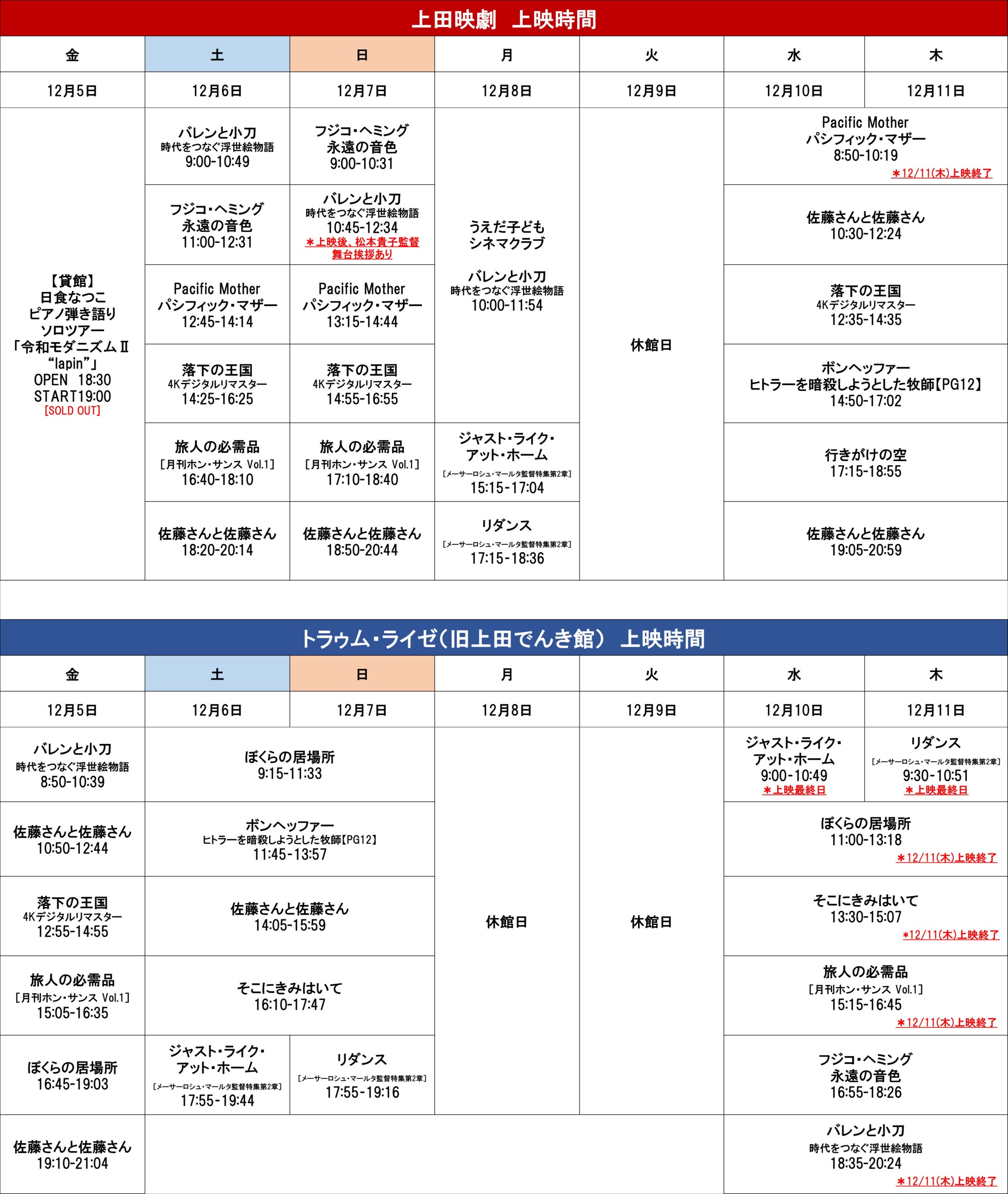 *【12月12日~12月18日】の上映スケジュールは、12月4日(木)夜以降に掲載いたします。