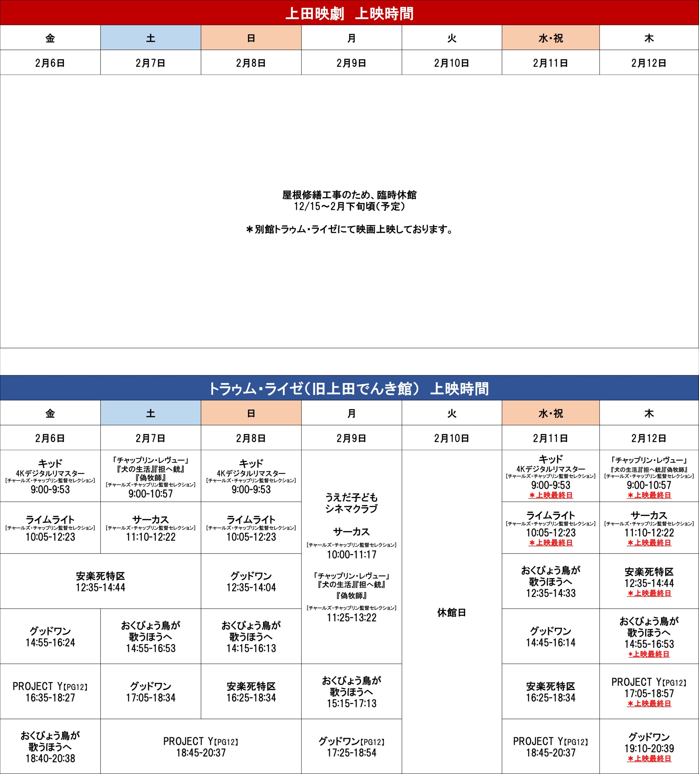 *【2月13日~2月19日】の上映スケジュールは、2月5日(木)夜以降に掲載いたします。