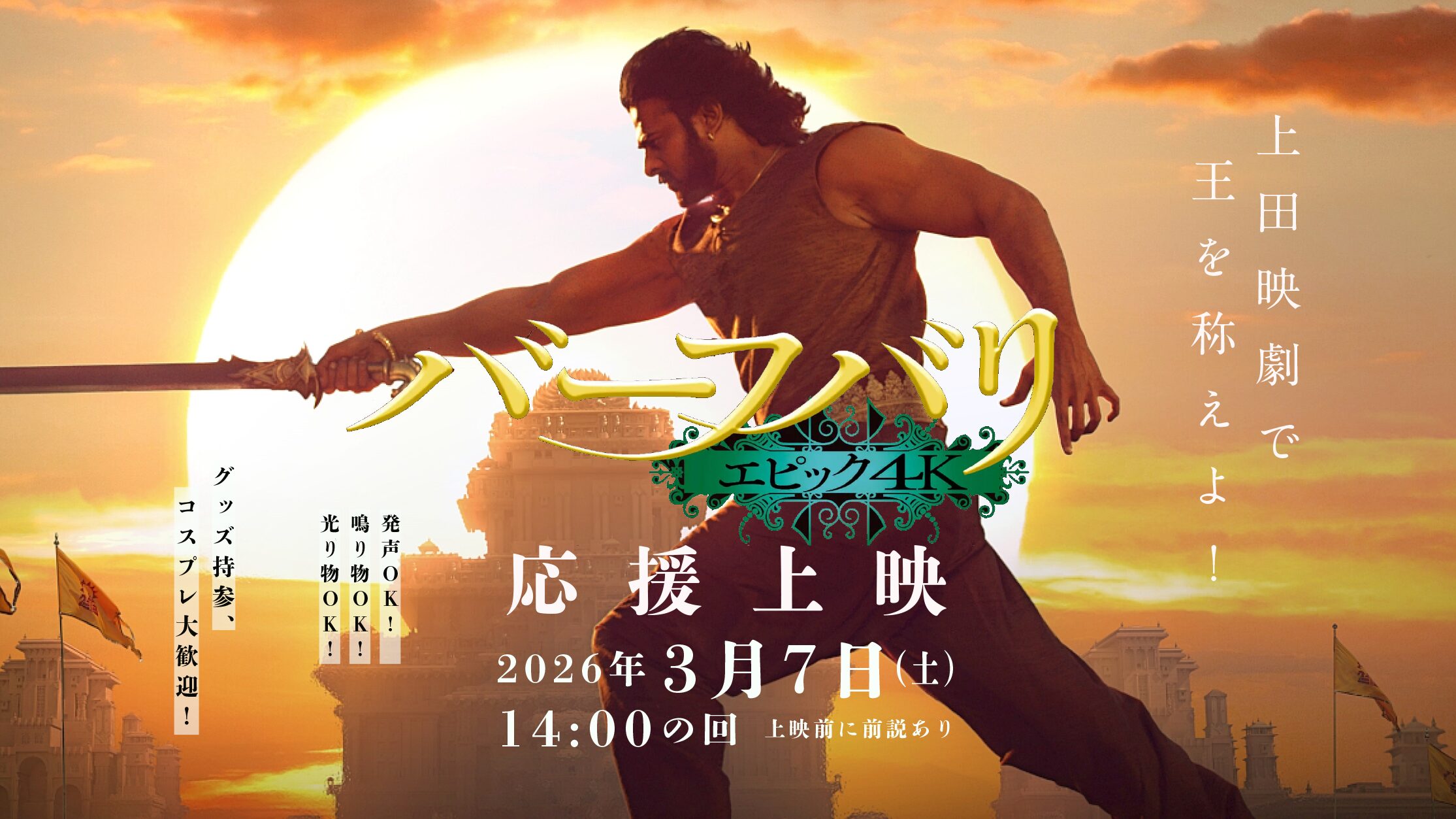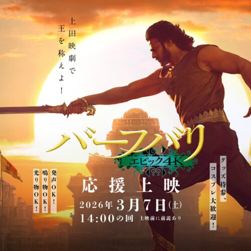上田映劇 応援上映の原点! あの『バーフバリ』が未公開シーンなどを加えた全編を貫く1本の傑作『バーフバリ エピック4K』として誕生。その上映を記念して...