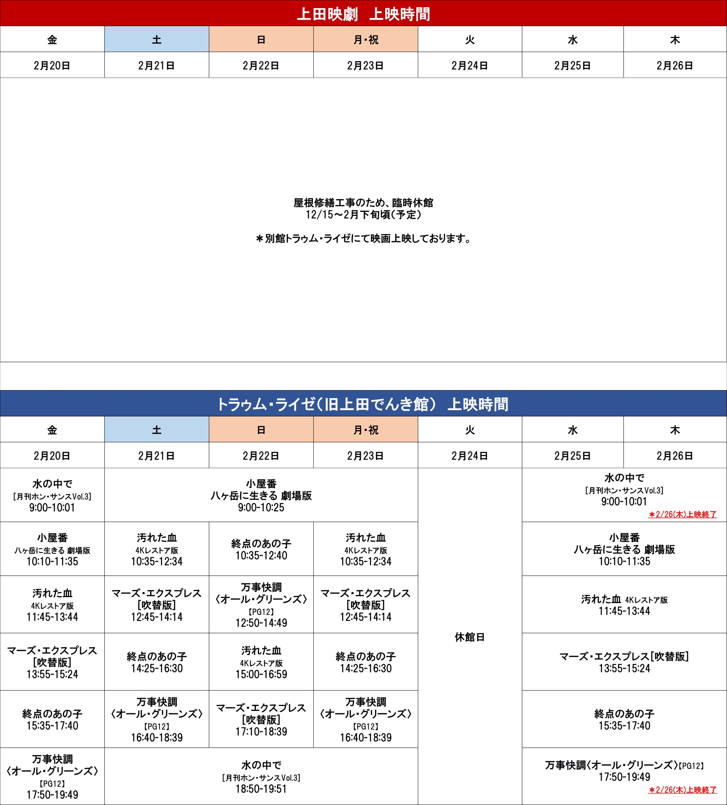 *【2月20日~2月26日】の上映スケジュールは、2月12日(木)夜以降に掲載いたします。