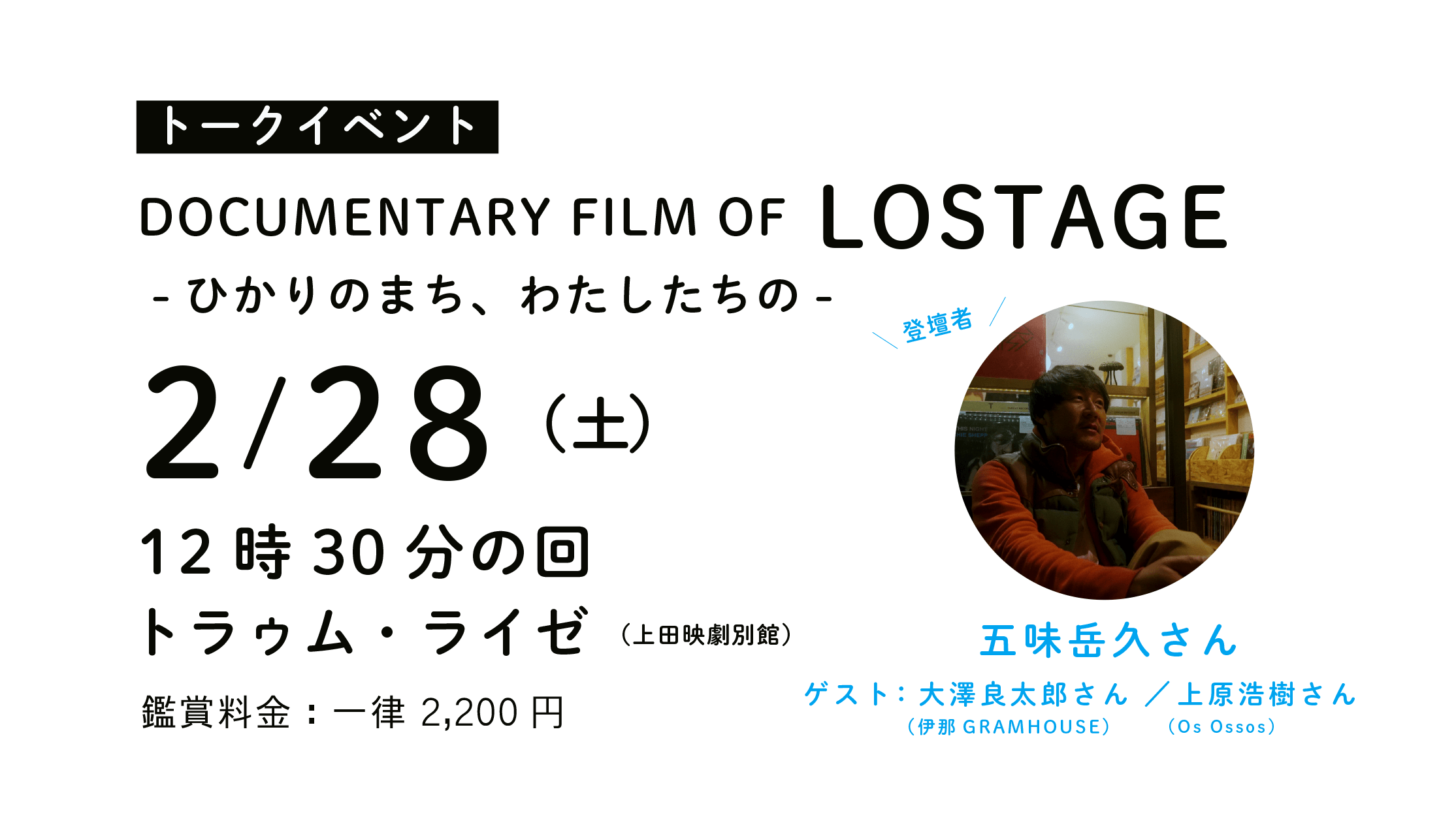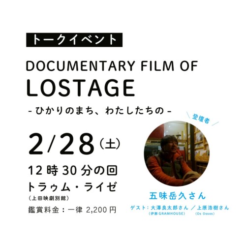 2月28日(土)12時30分の回の上映後、五味岳久さん、大澤良太郎さん(伊那GRAMHOUSE)、上原浩樹さん(Os Ossos) によるトークイベン...