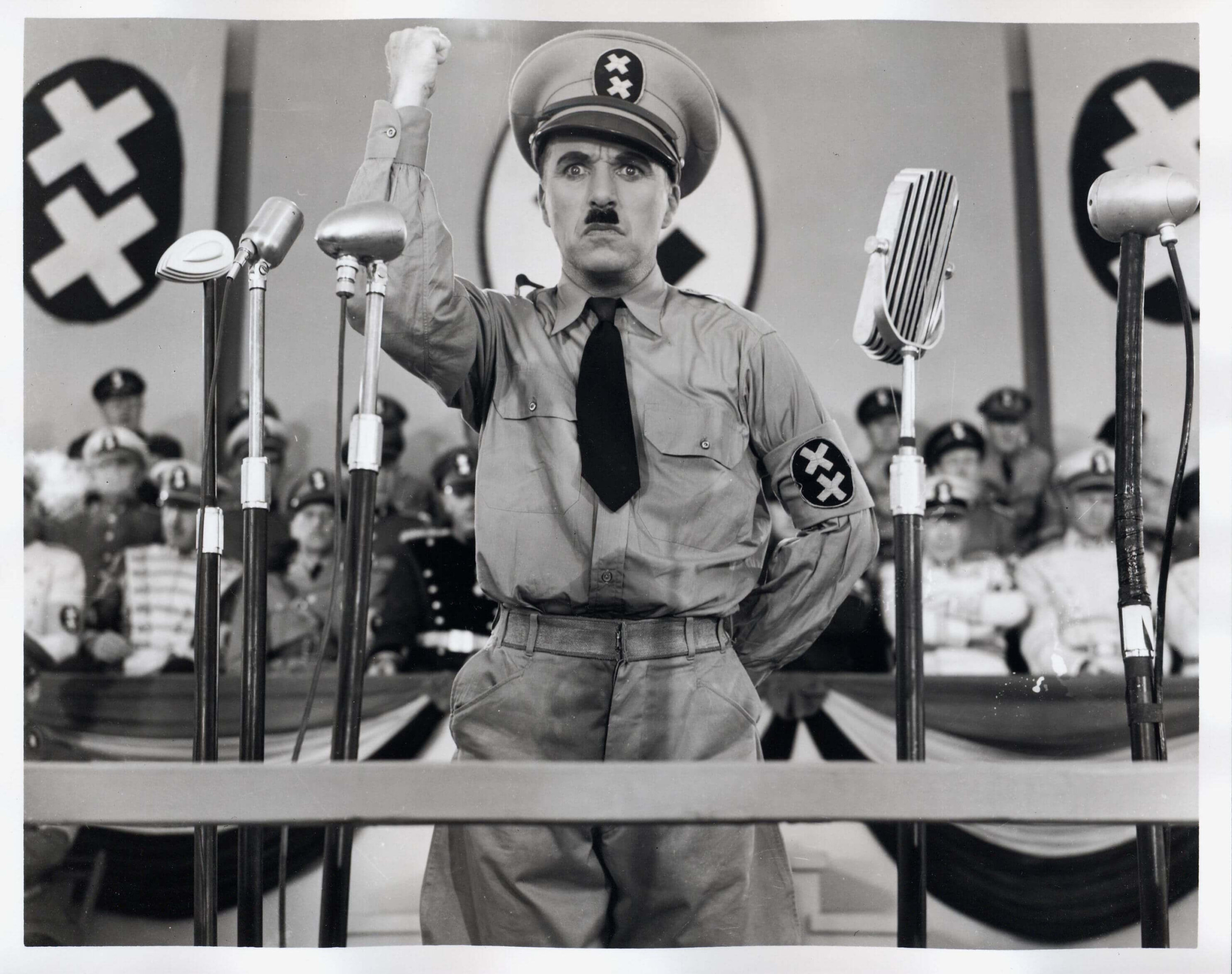 独裁者ヒンケルと瓜二つのユダヤ人の床屋。ヒンケルが世界征服の狂気に憑かれて隣国への侵略を進めるなか、ひょんなことから床屋は独裁者と間違われて、大群衆を前に演説をしなければならないことになる──ヒトラーの全盛期に、チャップリンが笑いを武器に真っ向から立ち向かった問題作。