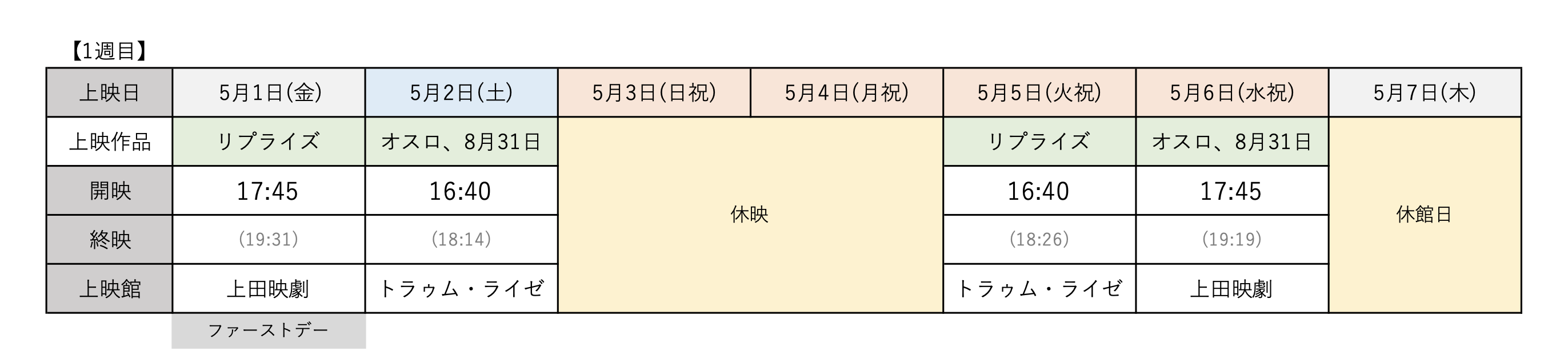 ヨアキム・トリアー オスロ三部作【5/1~14】*『センチメンタル・バリュー』公開記念特集上映 今後の上映作品 [上映日程]2026年5月1日(金) 〜 14日(木) *休映:5/3~4、7、12 “ 記憶に棲みつく、愛と孤独のオスロ三部作 ” ヨアキム・トリアーは1974年生まれ。「オスロ三部作」の1作目にあたり、長編デビュー作の『リプライズ』(06)でノルウェーのアカデミー賞と言われるアマンダ賞の最優秀作品賞、監督賞、脚本賞を受賞し注目を集めます。続く『オスロ、8月31日』(11)が第64回カンヌ国際映画祭のある視点部門に出品されると、悲しみや孤独にフォーカスしながらも多くの人の共感を集める傑作として高く評価され、世界から新作が待望される監督となりました。その後初の英語作品でイザベル・ユペールを主演に迎えた『母の残像』(15)、異色のホラーとして賞賛された『テルマ』(17)と着々とキャリアを重ね、2021年、「オスロ三部作」の最終作として第74回カンヌ国際映画祭のコンペティション部門で上映された『わたしは最悪。』(21)で、主演のレナーテ・レインスヴェが見事女優賞を受賞。アカデミー賞も2部門でノミネートを果たし、多くの人が2021年のベスト映画に選ぶなど、日本でもヒットを記録しました。そして2025年、最新作『センチメンタル・バリュー』がカンヌの舞台で堂々のグランプリ受賞、本年度アカデミー賞最有力作品ともいわれ、現代映画を代表する名匠のひとりとなりました。 今回上映となる“オスロ三部作”は、単に同じ都市を舞台とする三作品ではありません。ヨアキム・トリアーがデビュー以来一貫して探究してきたテーマが、三人の主人公を通して結晶した、彼の作家性を最も明瞭に示すシリーズとなっています。そこに浮かび上がるのは、まず「記憶とアイデンティティの揺らぎ」。人物たちは過去・現在・未来のはざまで揺れ動き、“あり得たかもしれないもう一人の自分” の影が常に立ち上がります。また、人生の岐路で誰もが抱く「もし別の選択をしていたなら」という思考と、映画という媒体が持つ“反復/再演”の力が交差する、独特の語りの構造も三部作を貫いています。さらに、トリアー作品が繊細に描いてきたのが、「普通の人びと」の見えにくい苦悩と実存的危機です。成功と挫折、自己喪失、人間関係、社会の期待とプレッシャー。目には見えない現代の痛みが静かに滲み出ています。そして何より特徴的なのは、一人の人生に複数の時間が同時に重なり合う瞬間の表現です。心理や記憶、選択の分岐が、一つのショットや編集の中で立体的に浮かび上がり、観客は「時間そのものが揺らぐ感覚」を体験することになります。こうした独自の語りと実存的テーマの積層によって、“オスロ三部作”は国際的にも高く評価され、現代映画における重要作として位置づけられてきました。 [上映作品] ・『リプライズ』(2006) ・『オスロ、8月31日』(2011) ・『わたしは最悪。』(2021) 提供:JAIHO 配給:グッチーズ・フリースクール、ギャガ [上映時間] 『リプライズ』 [2006年/ノルウェー/106分]R15+ 監督:ヨアキム・トリアー 製作:カーリン・ユルスル 脚本:エスキル・フォクト、ヨアキム・トリアー 撮影:ヤコブ・イーレ 音楽:オーラ・フロッタム 出演:アンデルシュ・ダニエルセン・リー、エスペン・クロウマン=ホイネル、ヴィクトリア・ヴィンゲ、オッド=マグヌス・ウィリアムソン © Spillefilmkompaniet 4 1/2 若さの疾走と挫折の瞬間がリプライズする衝撃デビュー作 作家を志す二人の青年エリックとフィリップ。成功と失敗、友情とすれ違い、希望と絶望。人生の“リプライズ=反復/再演”を複層的な語りで描き出した、ヨアキム・トリアーの長編デビュー作にして、後の作風がすでに結晶した青春映画。のちにトリアーが「オスロ三部作」全作品や最新作『センチメンタル・バリュー』までタッグを組み続け、オリヴィエ・アサイヤスやミカエル・アース、ミア・ハンセン=ラブといった監督の作品に出演する名優アンデルシュ・ダニエルセン・リー初の本格的な映画出演作。 *日本初劇場ロードショー 『オスロ、8月31日』 [2011年/ノルウェー・スウェーデン・デンマーク/94分]PG12 監督:ヨアキム・トリアー 製作:ハンス=ヨルゲン・オスネス、ジグべ・エンドレセン 脚本:エスキル・フォクト、ヨアキム・トリアー 撮影:ヤコブ・イーレ 音楽:オーラ・フロッタム 出演:アンデルシュ・ダニエルセン・リー、ハンス・オラフ・ブレンネル、マリン・クレピン、イングリッド・オラワ、ヨハンナ・ヒェルヴィック・レダン、レナーテ・レインスヴェ © Motlys AS / Norway 人生の縁に立つ孤独な男の魂の彷徨 薬物依存症からの回復施設にいるアンデシュは、面接のために一日だけ街へ戻る許可を得る。過去の友人や恋人と再会しながら、自らの人生の空白と向き合う彼は、“取り返しのつかない決定的な一日”を静かに過ごすことになる。ドリュ・ラ・ロシェル『ゆらめく炎』の精神を現代に移した傑作。その後トリアーの『