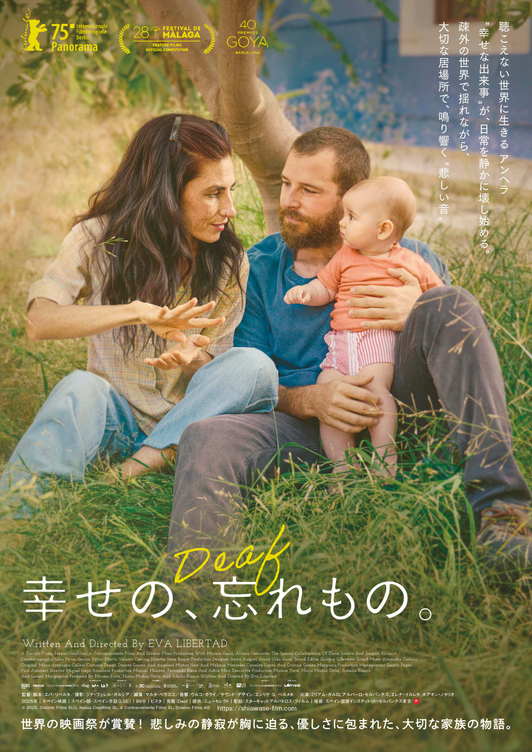 幸せの、忘れもの。【5/22~】 今後の上映作品 [上映日程]2026年5月22日(金) 〜 休映:5/26、ほか 聴こえない世界に生きるアンヘラ“幸せな出来事”が、日常を静かに壊し始める。疎外の世界で揺れながら、大切な居場所で、鳴り響く“悲しい音”世界の映画祭が賞賛!悲しみの静寂が胸に迫る、優しさに包まれた、大切な家族の物語。 [STORY] 聴こえない世界に生きるアンヘラと、優しく寄り添う夫エクトル。二人は手話というかけがえのない言葉で、心を通わす。アンヘラは陶芸工房で働き、優しい土の匂いと仲間たちにも見守られ、静かで平穏な日々を過ごしていた。しかし、ある “幸せな出来事”を境いに、何かが少しずつ揺らぎ始める…。やがて再び“疎外の世界”に引き戻されるアンヘラ。聴こえない世界とその外側で、時々見え隠れする“本当の幸せ”をアンヘラは、つかまえることができるのだろうか…。 [INTRODUCTION] ベルリン国際映画祭2冠/スペインマラガ映画祭3冠/ゴヤ賞3冠 第55回ベルリン国際映画祭にて観客賞とアート・シネマ賞を、第28回スペインマラガ映画祭では観客賞ほか計3部門、第40回ゴヤ賞でも最優秀新人監督賞ほか計3部門もの受賞を果たした本作。新進気鋭監督の作品が、観る者の心を深く揺さぶり、静かなる熱狂を巻き起こした。原型となったのは、18分の短編映画『Sorda』。各国の映画祭でノミネート、受賞をあわせ110を超える評価を獲得し、本作へと繋がった。監督を務めるのはエバ・リベルタ。劇作家、社会学者の顔も持ち、そのキャリアは本作にも多大な影響を及ぼしている。 主演は監督の実妹(ろう者)実体験に基づく繊細でリアリティ溢れる演技が観客の胸を打つ! 主演のミリアム・ガルロは、ろう者の俳優で監督の実の妹。監督が「きっと私たちは、一生をかけてこの映画を準備してきた」と語るように、本作には監督と妹自身の長年の実体験が色濃く反映され、研ぎ澄まされたリアリティが宿っている。 いまだかつて無い、斬新音響演出で、ろう者の感性を没入的感覚的に体験! ろう者と聴者との僅かなすれ違い、それぞれが感じる異なる疎外感、いままでの映画作品には決して無かった繊細で絶妙な演出が冴えわたる。ろう者と聴者が象徴的な主人公としながらも、母として、子として、夫婦として、そして生きる全ての人々が感じるふとした切なさ、些細な疎外感、そして必死にもがいた先の小さな幸せを見事に映し出す。がんばってがんばって懸命に日々を過ごしている全ての人に贈る、本当の幸せへの道しるべ。 『幸せの、忘れもの。』 [2025年/スペイン/スペイン語・スペイン手話(LSE)/ビスタ/99分] 監督:エバ・リベルタ 出演:ミリアム・ガルロ、アルバーロ・セルバンテス、エレナ・イルレタ、ホアキン・ノタリオ 英題:Deaf 提供:ニューセレクト 配給:スターキャットアルバトロス・フィルム © 2025. Distinto Films SLU, Nexus Creafilms SL, A Contracorriente Films SL, Diverso Films AIE ★第55回ベルリン国際映画祭 パノラマ部門 観客賞 受賞、アート・シネマ賞 受賞 ★第28回マラガ映画祭 観客賞 受賞、主演女優賞 受賞、主演男優賞 受賞 ★第69回バリャドリッド国際映画祭 金のビスナガ(最高賞)受賞 ★第40回ASECAN オペラ・プリマ賞(新人長編映画賞) 受賞 ★第2回ラテンアメリカ批評家協会賞 ヨーロッパ映画部門受賞 ★第40回ゴヤ賞 最優秀新人監督賞受賞、最優秀新人女優賞受賞、最優秀助演男優賞受賞 [公式サイト] shiawase-film.com [上映時間] *準備中 Tweet Share Hatena Pocket RSS feedly Pin it 今後の上映作品 ドランクヌードル【5/22~】 イマジナリーライン【5/15~】*イベントあり ピックアップ記事 現在上映中の作品 オーロラの涙【3/27~4/9】*入場者プレゼントあり 現在上映中の作品 現在上映中の作品 決断するとき【4/3~16】 現在上映中の作品 現在上映中の作品 ホールディング・リアット【3/27~4/9】*ベルリン国際映... 現在上映中の作品 関連記事一覧 今後の上映作品 自然は君に何を語るのか【4/17~23】*月刊 ホン・サンス... 今後の上映作品 ARCO アルコ【4/24~】*日本語吹替版 今後の上映作品 ボタニスト 植物を愛する少年【5/29~】 今後の上映作品 ヨアキム・トリアー オスロ三部作【5/1~14】*『センチメ... 今後の上映作品 ひゃくえむ。【4/17~23】*入場者プレゼントあり/うえだ... 今後の上映作品 廃用身【 順次公開】 今後の上映作品 ロッコク・キッチン【4/10~23】*舞台挨拶あり 今後の上映作品 ペリカン・ブルー 〜自由への切符〜【5/1~】