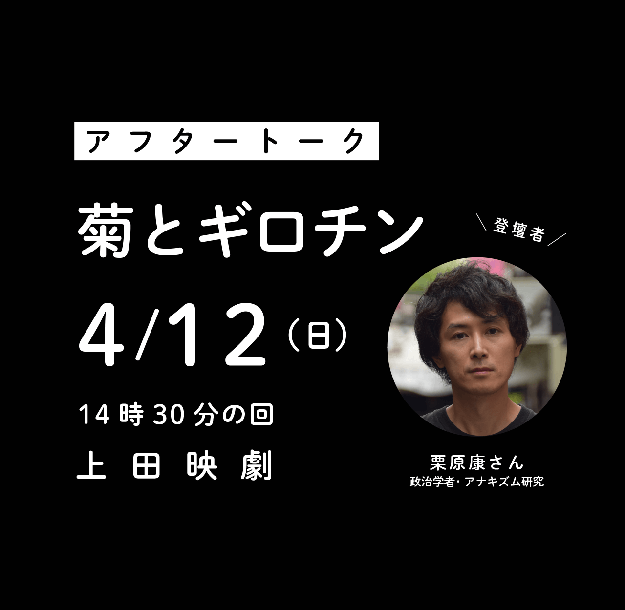 4月12日(日)14時30分の回の上映後、政治学者・アナキズム研究の栗原康さんによるアフタートークイベントを開催致します。