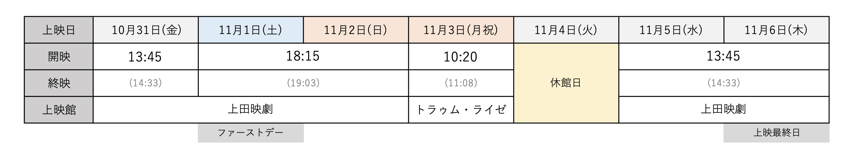 [上映日程]2025年10月31日(金) 〜 11月6日(木) 休映:11/4