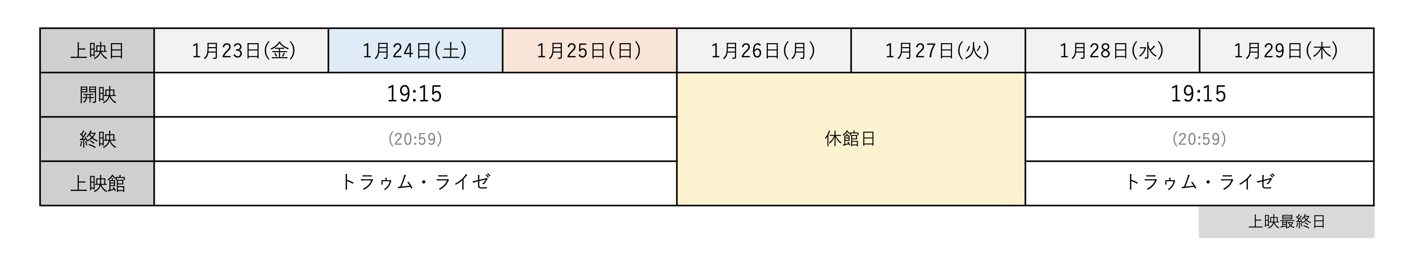 Good Luck【1/23~29】 現在上映中の作品 [上映日程]2026年1月23日(金) 〜 29日(木) *休映:1/26~27 ” なんか いいこと ないかな ”絶好調に人生低迷中なふたりの、ちょっとおかしくて切なくなくもない旅が始まる——— [INTRODUCTION] 『百円の恋』、NHK連続テレビ小説『ブギウギ』脚本や、『雑魚どもよ、大志を抱け』『劇場版 それでも俺は、妻としたい』テレビドラマ『こんばんは、朝山家です。』など立て続けに話題作を手がける足立紳の監督最新作は、大分は豊後大野を舞台に、生きるのが不器用な男女ふたりのあてどないアンブリンをユーモアとサプライズを込めて描くロードムービー。 「監督の撮りたいものを撮る」というコンセプトの別府発短編映画プロジェクトから飛び出した長編映画。ついには大分も飛び出し、ウディネ・ファーイースト映画祭、上海国際映画祭など世界の映画祭をチルな空気感と唯一無二の演出でひそかにざわつかせてきた。 売れない映画監督・太郎に佐野弘樹(「SUPER HAPPY FOREVER」)、太郎と共に旅をする正体不明の女性・未希に天野はな(「Chime」)。豊後大野をさまよう男女2人の姿を自然体に、ユーモラスに演じる。ほか加藤沙希、篠田諒が物語に血を通わせ、剛力彩芽、板谷由夏がユニークな役柄で驚かせてくれる。 世の中とチューニングの合わないふたりの、可笑しくて、ささやかで、ちょっと切ない2日間。 足立紳にしか撮れない、多幸感あふれるロードムービーが誕生した。 [STORY] 30歳間際の自称・映画監督の太郎。大分県で行われる映画祭に入選を果たし意気揚々と現地に向かうも、作品を厳しく批判されてしまい意気消沈。映画祭のパーティーをすっぽかしてフラフラと隣町の豊後大野へ向かうと、そこで太郎の映画を観ていた未希という不思議な女性と出会い、一泊二日だけの小さな旅をすることに。正体不明ではあるが、明け透けな性格の未希に映画づくりに自信を持てない自分をさらけだし、ほのかな恋心も抱き始める太郎だったが…ふたりがたどり着く、旅の結末は? 『Good Luck』 [2024年/日本/104分] 出演:佐野弘樹、天野はな、加藤紗希、篠田諒、剛力彩芽、板谷由夏 脚本・監督:足立紳 ©2025「GoodlLuCk」製作委員会(別府短編プロジェクト・TAMAKAN-theROOM) [公式サイト] good-luck [上映時間] Tweet Share Hatena Pocket RSS feedly Pin it 現在上映中の作品 小川のほとりで【1/23~29】*月刊 ホン・サンス Vol.2/スタンプ... 星と月は天の穴【1/16~29】 ピックアップ記事 現在上映中の作品 ポンヌフの恋人【1/23~2/5】*4Kレストア版 現在上映中の作品 現在上映中の作品 ストレイト・ストーリー 4Kリマスター版【1/16~2/4】... 現在上映中の作品 現在上映中の作品 小川のほとりで【1/23~29】*月刊 ホン・サンス Vol... 現在上映中の作品 関連記事一覧 現在上映中の作品 君と私【1/23~29】 現在上映中の作品 チャップリン【1/23~2/5】*「うえだ子どもシネマクラブ... 現在上映中の作品 小川のほとりで【1/23~29】*月刊 ホン・サンス Vol... 現在上映中の作品 ストレイト・ストーリー 4Kリマスター版【1/16~2/4】... 現在上映中の作品 ポンヌフの恋人【1/23~2/5】*4Kレストア版 現在上映中の作品 星と月は天の穴【1/16~29】